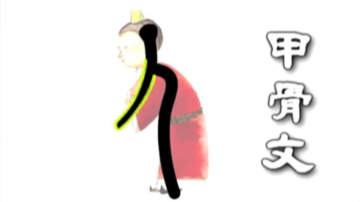 実は、漢字は楷書だけを見てはいけない。その漢字の歴史すべてを見ることが肝心だ。だから、まずは甲骨文字から。「人」は甲骨文字において、まるで直立した人間が手を垂らし、腰をかがめているように見える。さらに発展を遂げた小篆文字では、その腰はさらに低くなる。