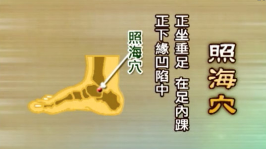 そこで今回林先生がご紹介するのが「照海穴(しょうかいけつ)」だ。これは腎経に属するツボで、内くるぶしの下約3センチに位置する。この「照海穴(しょうかいけつ)」に対して瀉血をするのだ。つまり、火であぶって消毒した針をこのツボへ刺す。ここにたまっていた淀んだ(よどんだ)血を数滴ほど出して除く。すると経絡の流れがスムーズになるのだ。