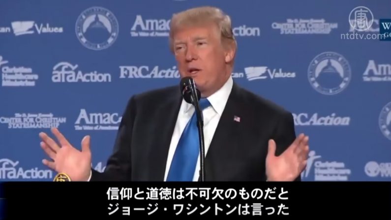 トランプ大統領(2017年10月)「アメリカの幸福、繁栄、成功にとって、信仰と道徳は不可欠のものだとジョージ・ワシントンは言いました」