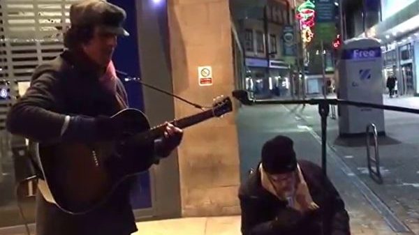 新年を迎える前夜、ロンドン市内の路上でジョン・ウォーカさんはエレキギターの演奏を披露していました。そのうち、ホームレスのような車イスの高齢の男性が近づいてきて、ジャズ定番曲「サマータイム」を歌いたいから、伴奏してほしいと申し出ました。