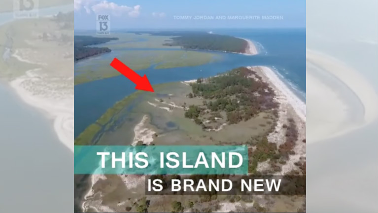 ジョージア州の地元紙Athens Banner-Heraldによると、同年9月ジョージア大学研究員が植物の成長を調査中、ハリケーン・イルマが残していった贈り物を偶然発見しました。新しい島の発見でした。ドローンからの映像で分かったそうです。その後、翌年1月になって初めてメディアで話題になったようです。