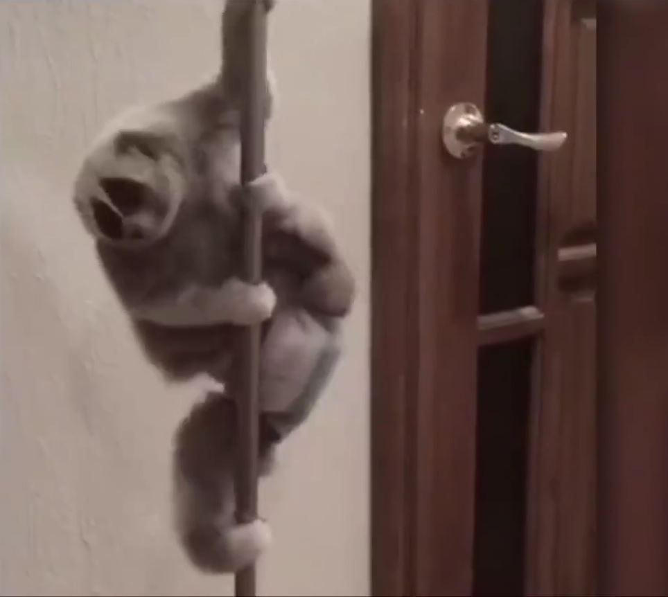 ロリスは、木登りが上手です。彼らは毎日ほとんどの時間を木の上で費やします。この動画のように、木が近くにない時は、ダンス棒が代わりになります。