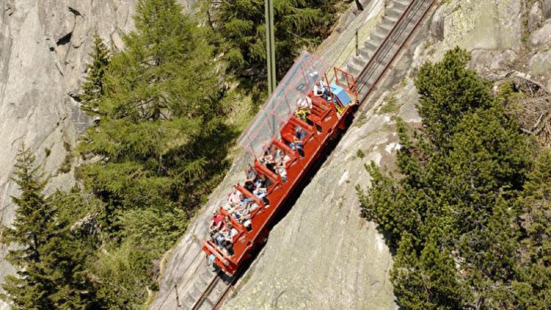 ジェットコスターは好きですか? 遊園地よりもっと大きく、大自然の中にあって、山の急斜面を利用するスリル満点の「ジェットコスター」をご紹介します。場所はアルプス山脈に囲まれたスイス。乗り物の正式名称はゲルマー・フニキュラー(Gelmer Funicular)、通称「ゲルマーバーン」で、スイスで最も急なケーブルカーです。これって、ジェットコスターとは違うのでは?と思う人は、次の動画をご覧になれば、きっと納得できると思います。