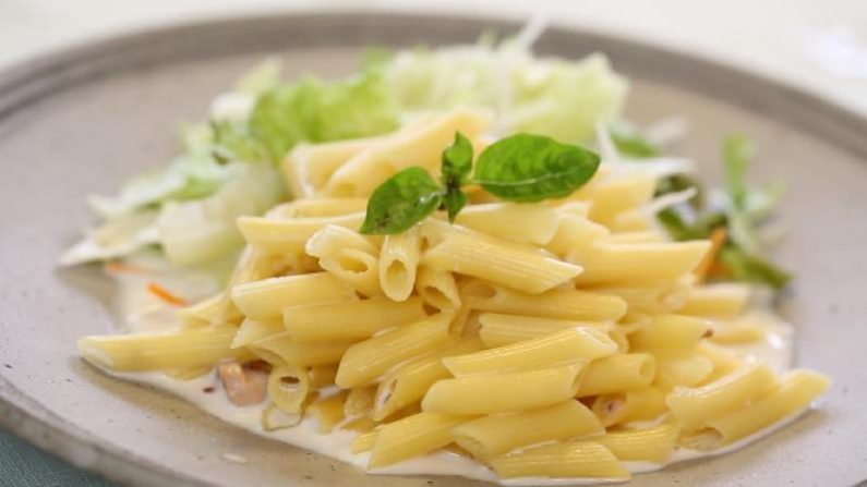 9.出来上がったペンネをお皿に盛る。