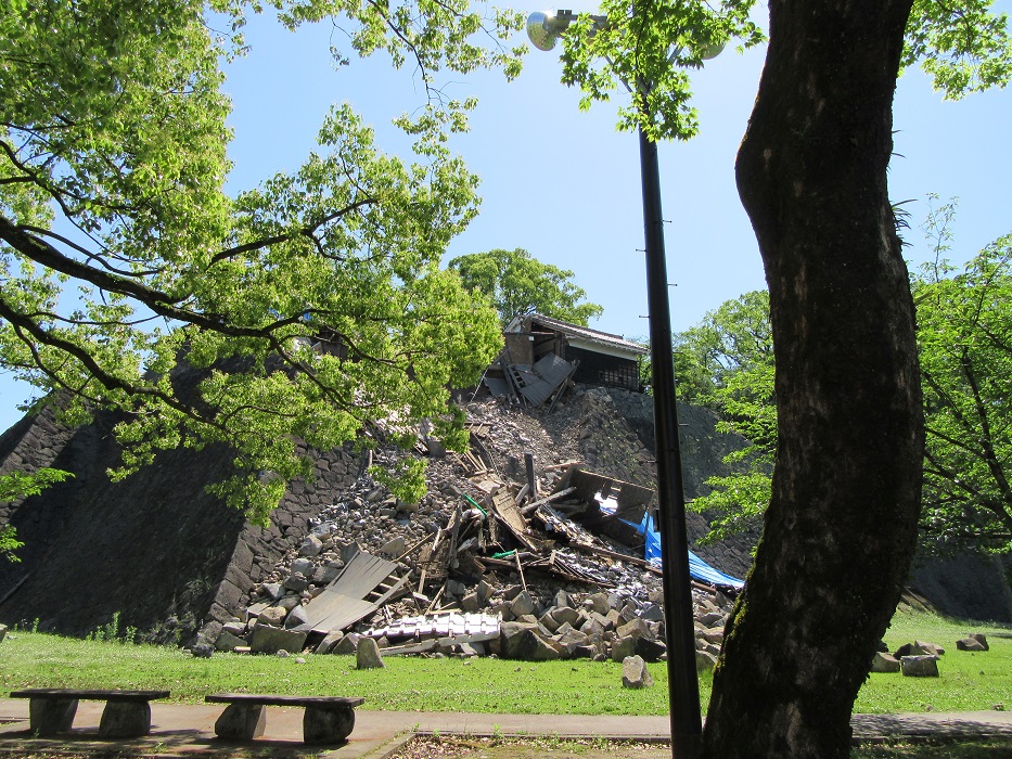 2016年4月14日、21時26分。今まで経験したことのない大きな揺れを感じた。すぐにテレビで地震速報があった。テレビ報道のなかで熊本城の姿が映し出されたが、お城から白煙があがっている。火事かと思ったが炎が見えない。後になって、城の瓦が崩落した時の土埃と分かった。翌日、明るくなってから見た熊本城は痛々しかった。しかしその時、16日未明に本震が来るとは思いもよらなかった。16日の揺れはさらに激しく、熊本城も大きな被害をこうむる。瓦はもちろん、石垣まで崩れ落ちたお城を見ると心が痛んだ。