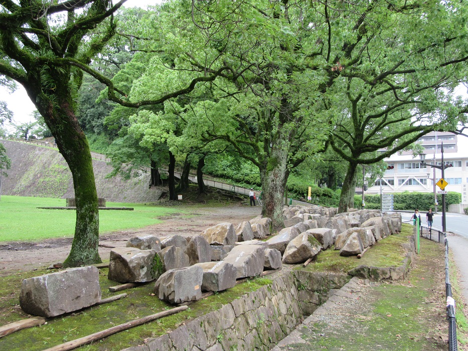 しかし城全体の復旧となると、まだまだ道のりは遠い。城全体では7万個~10万個の石垣を積み直す作業が残っている。震災前の石垣に番号を振り、崩落した石垣を並べ照合するという気の遠くなる作業が待っている。工法の研究や建物の復旧も含め工事完了は20年後の2039年を目指すという。