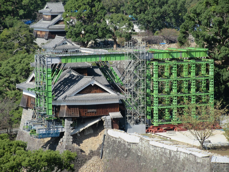 本震から3年たった今、熊本城も震災直後の無残な姿から少しずつ復旧してきている。城のシンボルである大天守では790個の石垣を積み直し、崩落した瓦も真新しくなった。黒白の壁もかっての雄姿を取り戻しつつあり、秋には天守閣の外観が元通りになる予定。本年10月の特別一般公開が予定されている。また、天守閣の内部はエレベーターが新設される予定で全ての工事が完了するのは3年後、2021年の春から一般公開が予定されている。小天守も石垣2400個を積み直し4月15日には最上階(4階)を再び設置する作業を始めた。4階部分は年内に完成予定。石垣を含めた外観は、こちらも2021年ごろに復旧する。