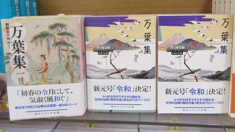 31年間続いた平成から、本日5月1日より「令和」と元号が変わった。年配の方だけでなく平成生まれの人には初めての改元となり、新元号名はどうなるのかと日に日に関心が高まっていった。4月1日に菅官房長官より新元号は令和と発表され、元号典拠が『万葉集』の梅花の歌、三十二首の序文にある『時に初春の令月にして気淑く 風和らぎ 梅は鏡前の粉を披き 蘭は珮後の香を薫らす』と報道されると、さっそく書店に本の注文が殺到し、売り切れ店が続出。出版社が大急ぎで増刷するという一幕も。いろんなイベントも企画され、令和関連グッズも多種販売されている。それだけ幅広い層が好感を持って受け入れているということだろう。