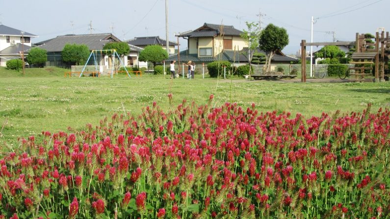 近くの公園にストロベリーキャンドルが咲いていました。花房がイチゴやろうそくの炎に似ていることが名前の由来で、和名は紅花詰草(ベニバナツメクサ)。原産地は南ヨーロッパから西アジアで日本には明治時代に牧草として入ってきたそうです。