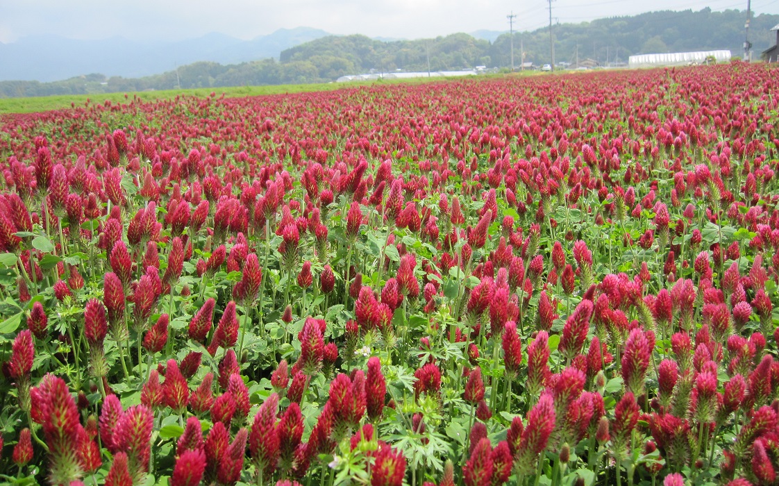 育てやすさと美しい色合いから園芸家に人気のある草花ですが、ストロベリーキャンドルにはもう一つの顔があります。マメ科植物特有の根粒菌が根に生息することで窒素成分を合成することができるのです。レンゲ草と同様に、土壌を豊かにする緑肥として利用されています。春、畑一面に赤い絨毯を敷いたかのような鮮やかな情景も素晴らしいのですが、無農薬農業にも一役買っています。