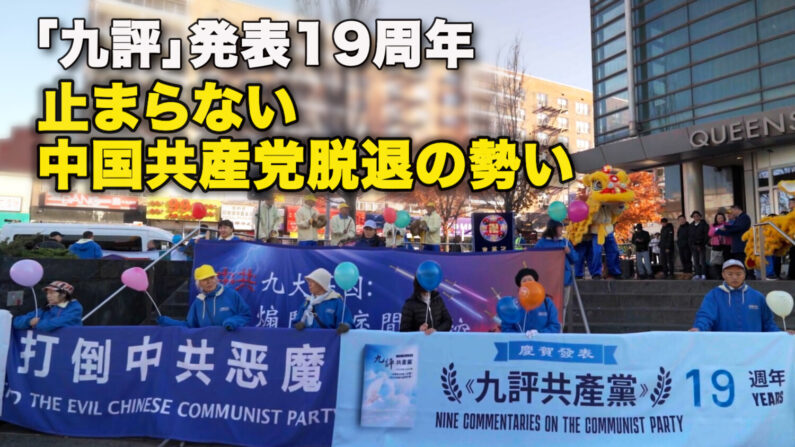 大紀元の社説シリーズ『九評共産党』の発表から19周年を迎えたこの日、全世界脱党支援センターは、ニューヨーク州フラッシングの華人コミュニティで祝賀イベントを開催しました。