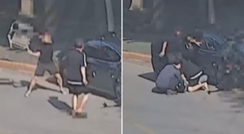 매체가 공개한 CCTV 영상에는 빠르게 후진해 가로수와 충돌하는 검은색 차량의 모습이 담겼다.