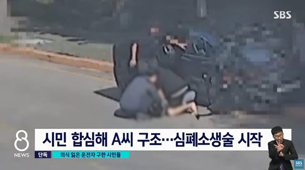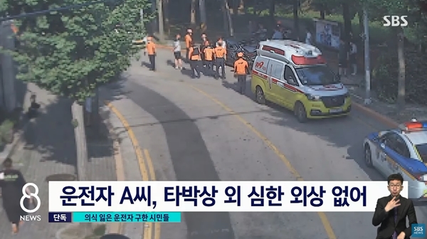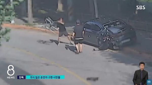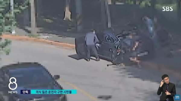 이어 깨진 창문 틈으로 손을 넣어 운전석 문을 열고 의식을 잃은 A 씨를 차에서 꺼냈다.