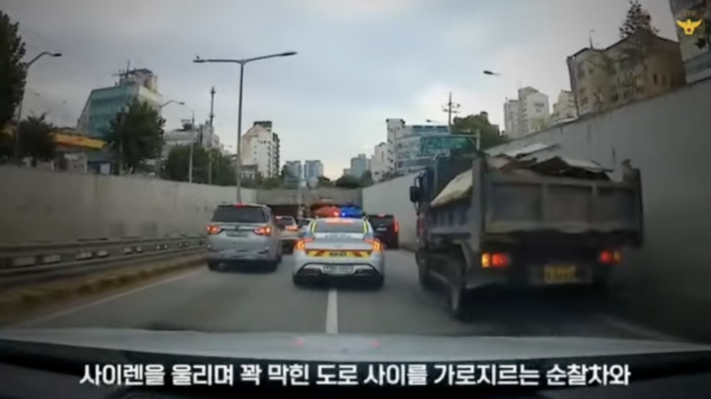 시민들도 협조하며 차량을 양 끝으로 붙여 길을 터준 덕에 경찰차와 택시는 수많은 차 사이를 빠르게 달릴 수 있었다.