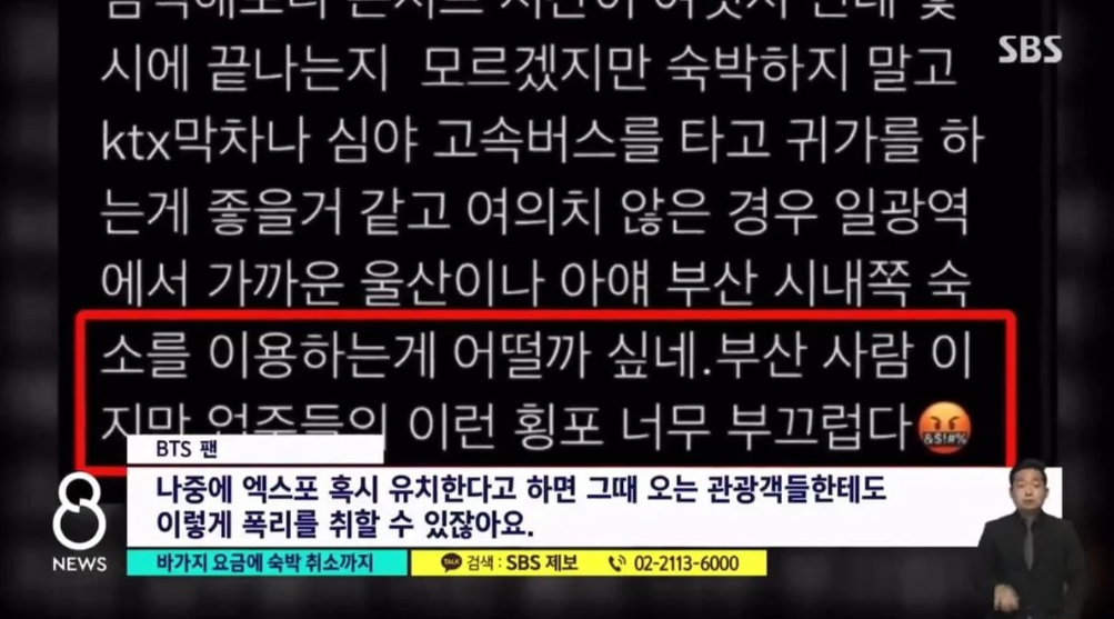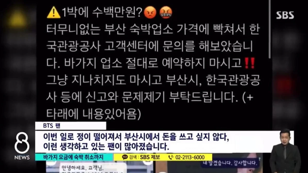 하지만 팬들은 부산 지역 숙박업소 1박 가격이 수백만 원에 달하는 곳도 있다며 문제를 제기하고 나섰다.