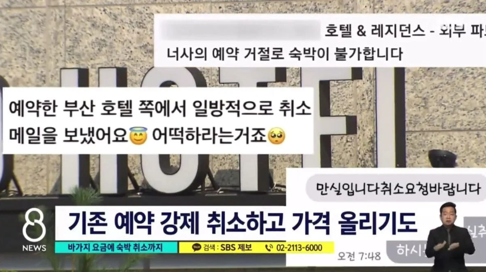 예약해둔 호텔에서 일방적으로 취소를 당했다는 글도 잇따라 올라오고 있다.