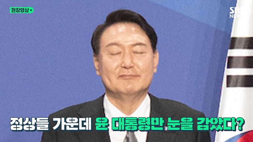 문제는 환하게 웃고 있는 다른 정상들과 달리 윤 대통령 홀로 눈을 감은 모습이라는 것.