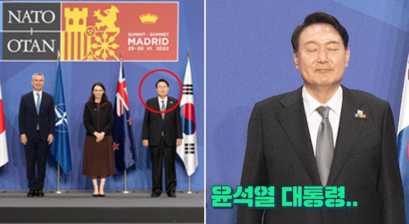 윤석열 대통령이 눈을 감은 순간 찍힌 사진이 북대서양조약기구(NATO·나토) 공식 홈페이지에 올라와 논란이 일었다.