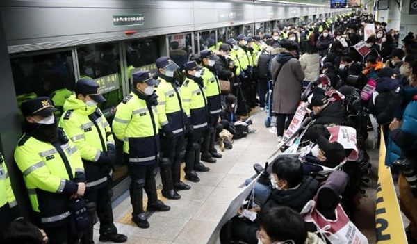 앞서 전장연은 장애인 권리 예산 반영과 장애인 권리 4대 법률 재개정을 요구하며 지난해 12월부터 ‘출근길 지하철 선전전’을 개최하고 있다.