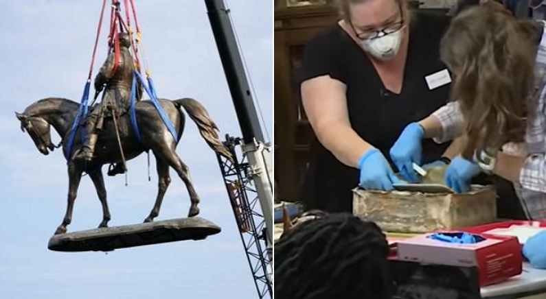 미국에서 철거된 동상 아래서 130년 이상 된 타임캡슐이 나와 화제다.