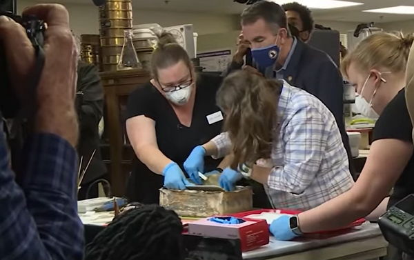 지난 22일(현지 시간) 로이터통신 등 외신에 따르면 미국 남북전쟁 당시 남부연합군을 이끈 로버트 리 장군의 동상 받침대 밑에서 타임캡슐이 발견됐다.