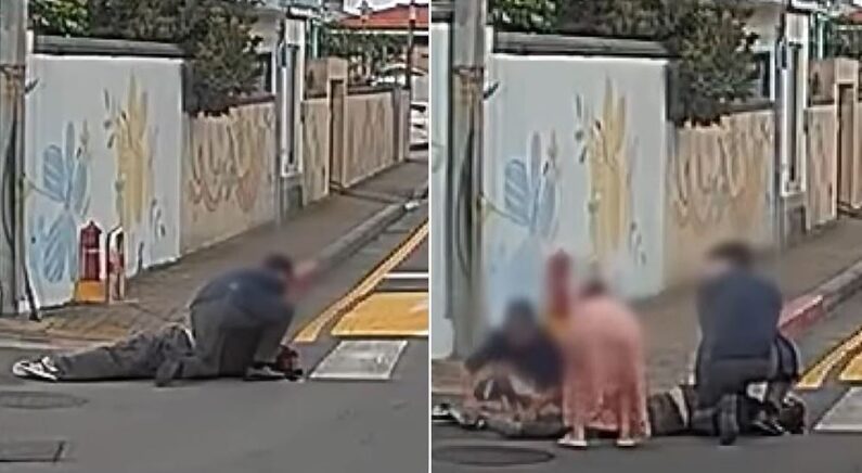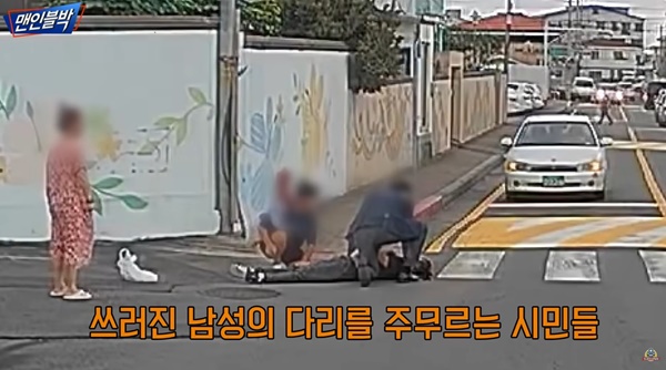 깜짝 놀란 A씨는 “어어!” 소리를 내기도 했지만, 이내 침착하게 차를 길가에 세우고 쓰러진 남성을 향해 달려갔다.