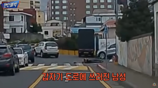 영상에 따르면 A씨는 최근 차를 몰고 주택가를 지나던 중, 길을 걷던 한 남성이 갑자기 도로 쪽으로 쓰러지는 모습을 목격했다.