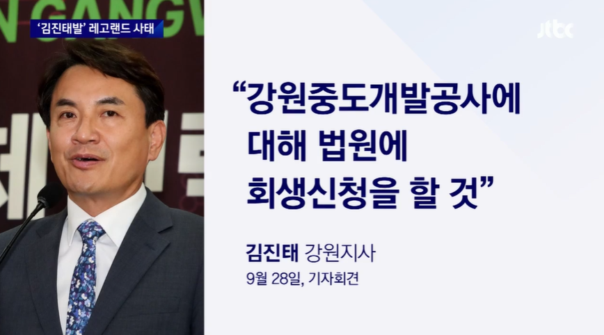 이번 사태는 김진태 강원도지사가 지난달 28일 강원 춘천시 중도동 레고랜드 테마파크 개발 시행사인 강원중도개발공사의 회생 절차를 신청하겠다고 밝히며 촉발됐다.