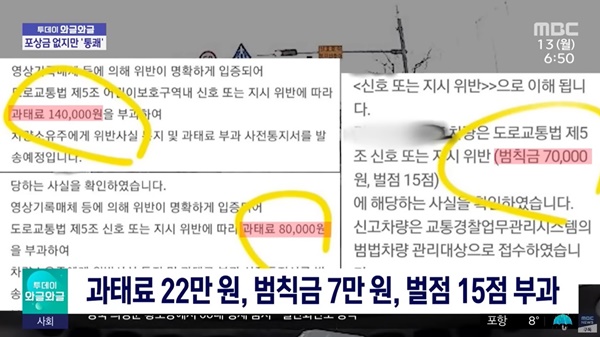 신고 처리 결과서를 보면, 해당 견인차는 과태료 22만 원에, 범칙금 7만 원, 또, 벌점 15점을 부과받았다.
