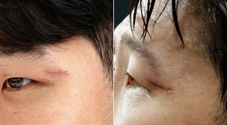 두 사진을 비교해 보면 손흥민 선수의 상처가 얼마나 악화됐는지 한눈에 알 수 있다.