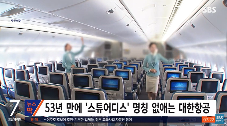 대한항공이 국내 항공업계 최초로 여성 승무원을 뜻하는 ‘스튜어디스(stewardess)’ 명칭을 없애기로 했다.