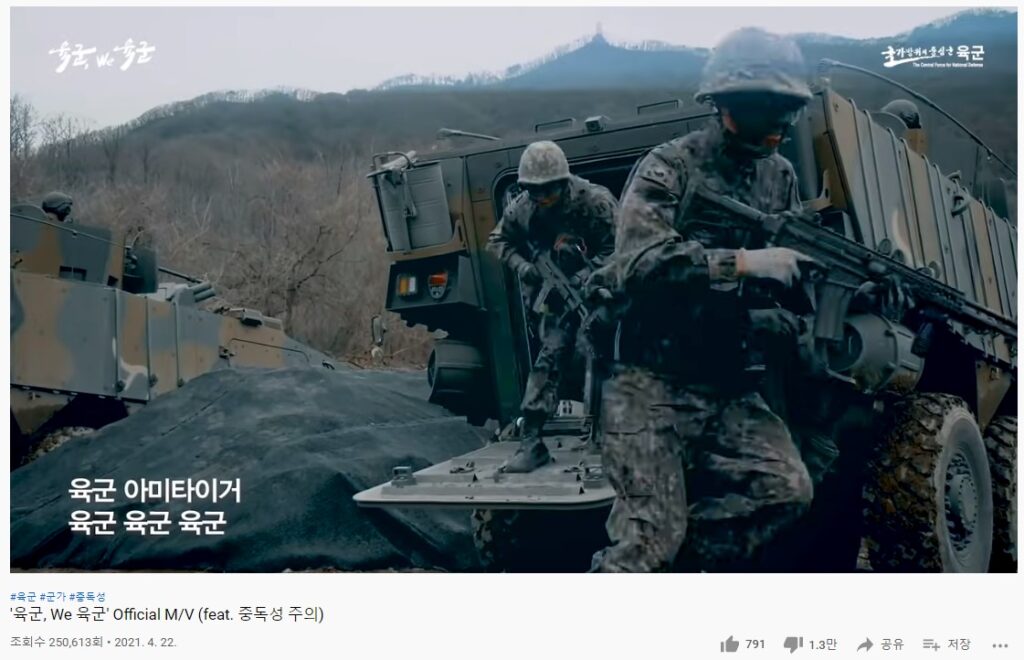 육군은 지난달 22일 공식 유튜브 채널을 통해 ‘육군, 위(We) 육군’ 뮤직비디오를 공개했다.