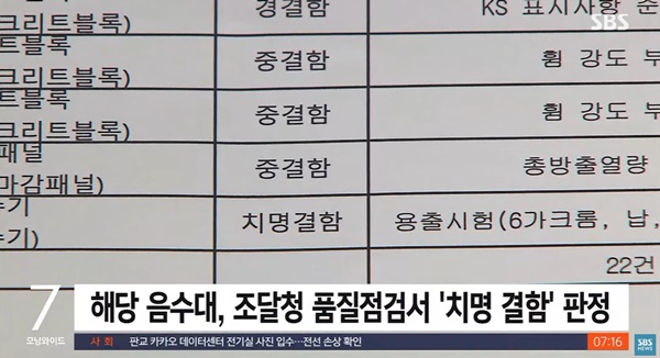그런데 해당 제품은 지난 8월 조달청 품질점검에서 ‘치명 결함’ 판정을 받은 것으로 전해졌다.