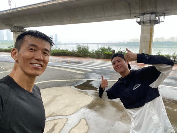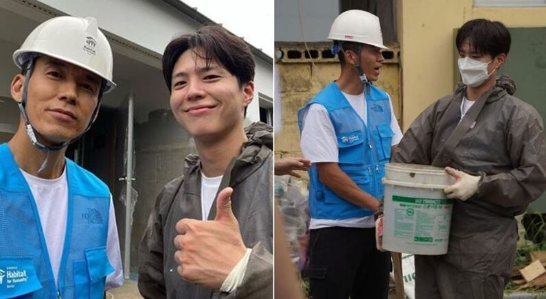 공개된 사진에는 작업복 차림의 션과 박보검 모습이 담겼다.