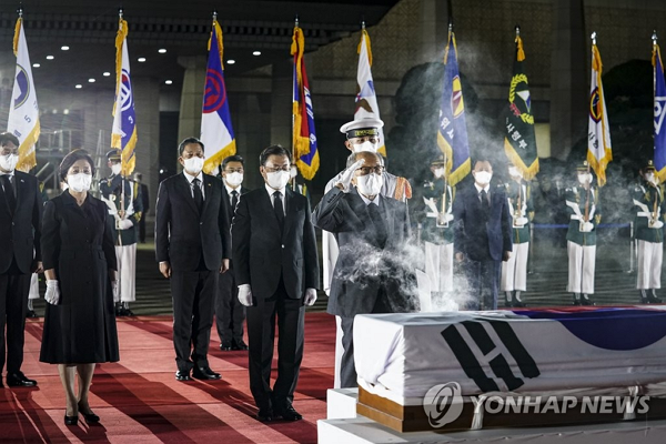 정부는 23일 밤 9시 30분 서울공항에서 ‘대한민국의 이름으로 당신을 기억하겠습니다’라는 주제로 ‘국군 전사자 유해 봉환식’을 거행했다.