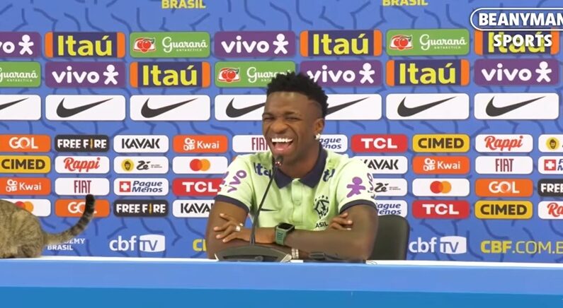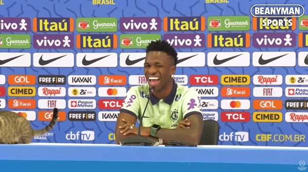 비니시우스는 결국 웃음을 참지 못했고, 취재진도 웃음바다가 됐다.
