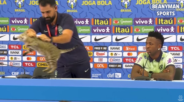 브라질 관계자가 단상에서 고양이를 그대로 떨어뜨렸기 때문이다.