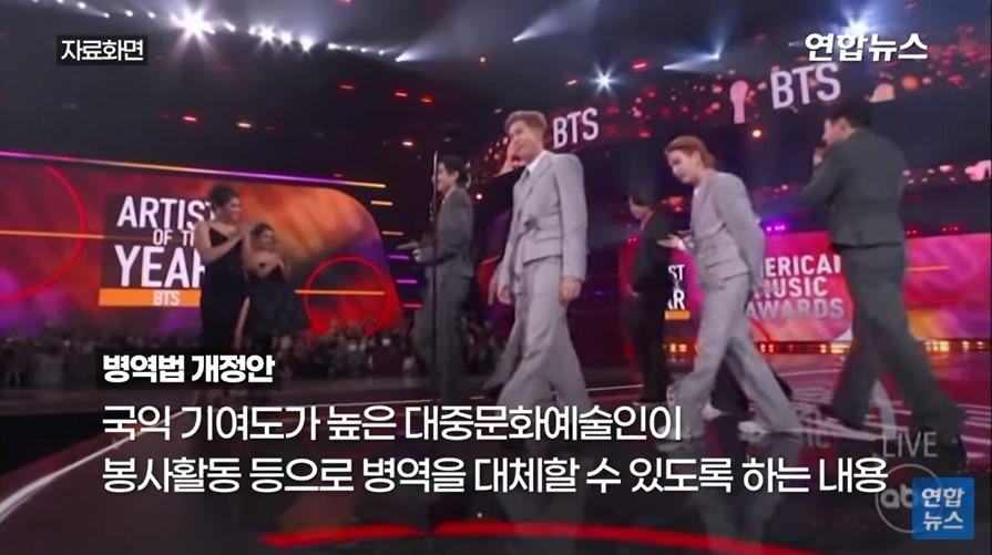 이와 관련해 정치권과 음악계에서는 공정함을 위해 BTS에게 병역특례가 주어져야 한다는 주장도 나왔다.