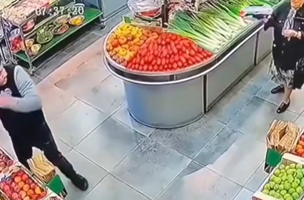 마트에서 채소를 고르던 할머니가 별안간 품에서 총을 꺼내 마트 직원을 향해 겨눴다.